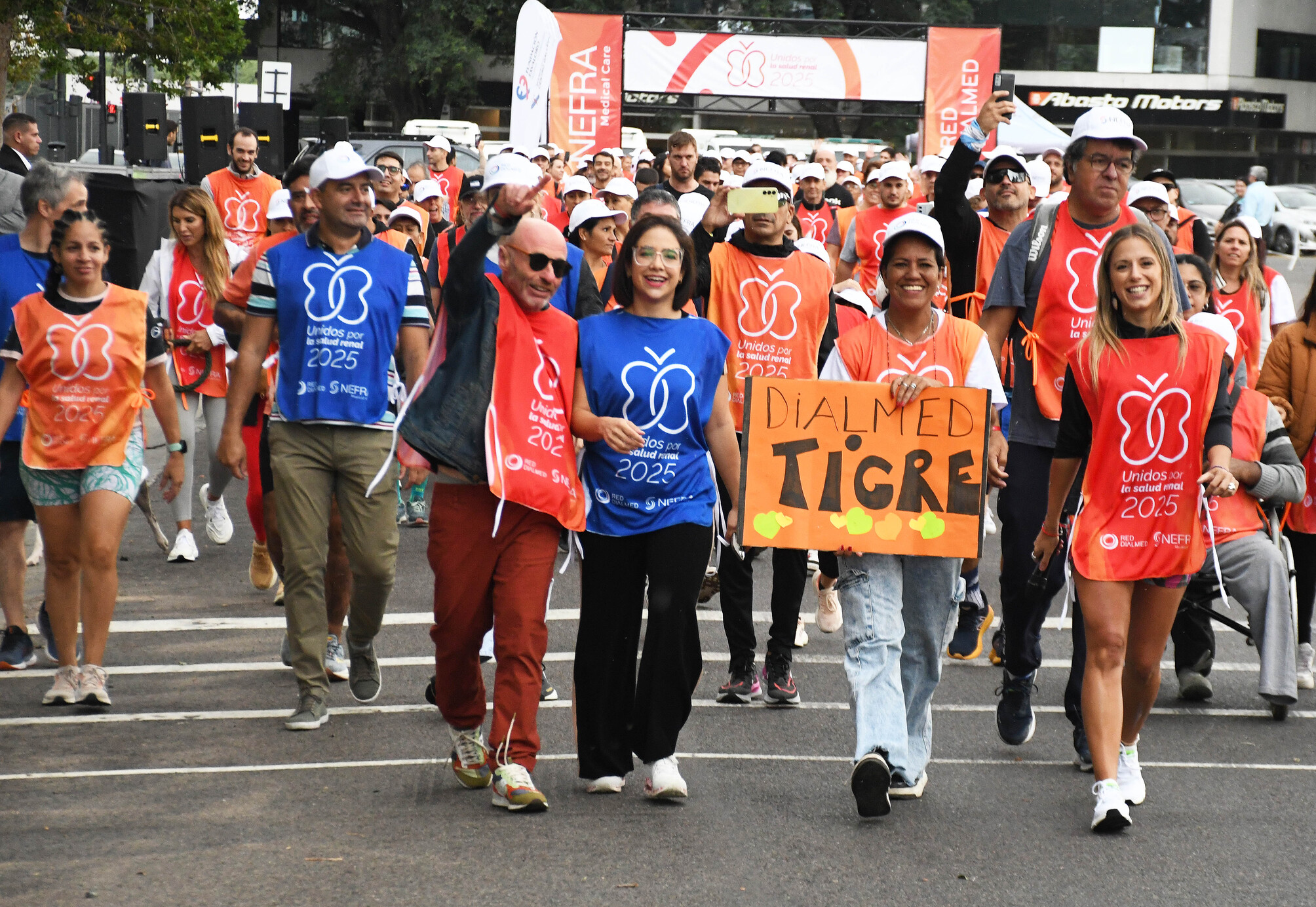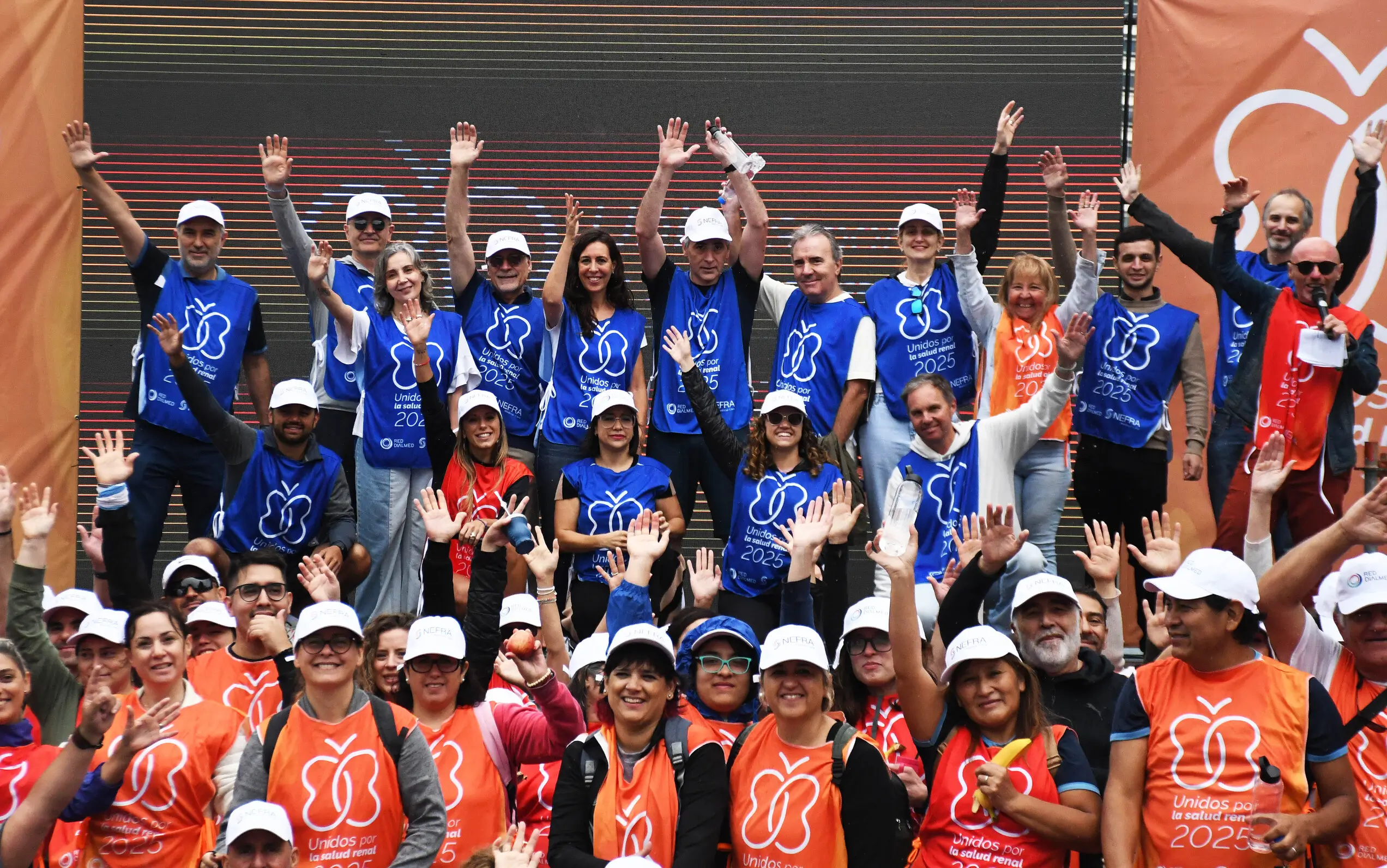 La caminata comenzó con una tradicional cuenta regresiva y estuvo llena de emoción y solidaridad. Pacientes, trasplantados y familiares participaron de esta actividad, todos vistiendo las pecheras naranjas de la campaña Unidos por la Salud Renal 2025. Entre los asistentes se destacaron figuras como Héctor Martini, Director General de RED BASA; Ariel Sosa, Director Médico de RED BASA; Andrea Falugi, Directora Médica de RED BASA; Walter Labonia, Director Estratégico de NEFRA Medical Care; Pablo Raffaele, referente del trasplante renal y miembro de la Fundación Favaloro; y Marcelo Carbone, Vicepresidente del GRUPO OLMOS.